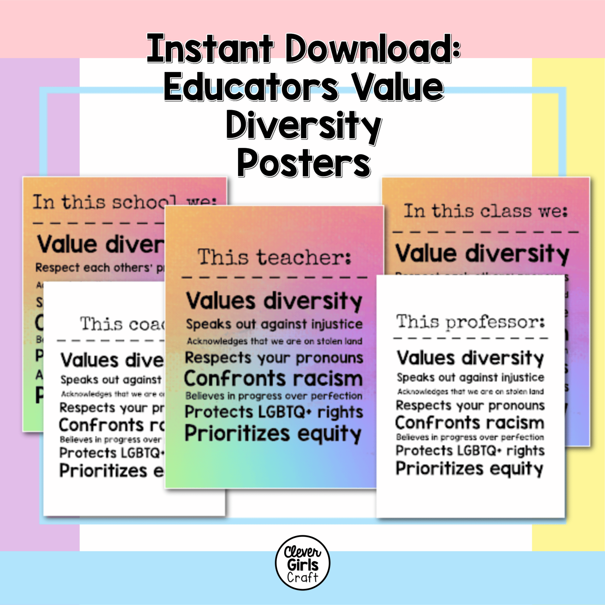 1 review for Educators Value Diversity Posters | Printable 8.5 x 11 posters | Digital Download